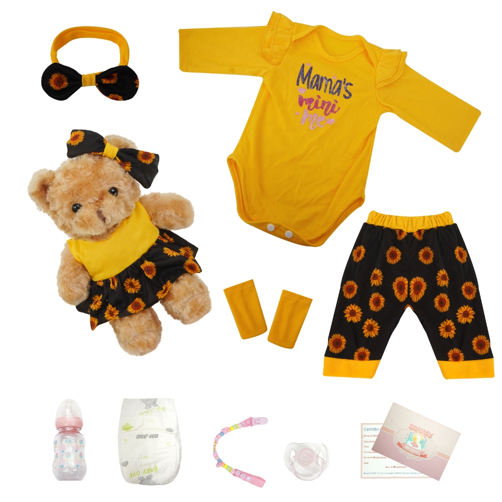 Boneca realista Certificado pelo INMETRO Material ecológico seguro, puro, muito macio, confortável, macio, real ao toque 👧🏿✨ Olha essa princesa afro com cabelos encaracolados que brilham, usando um conjunto amarelo cheio de girassóis — e o ursinho parcero tá de terno igual, fazendo dupla de fofura! A mamadeira na mão deixa tudo ainda mais real, né? A pele de silicone é macia e realista, como se estivesse segurando uma bebê de verdade. Os detalhes da roupa, da faixa no cabelo até as estampas de girassol no calção… tudo feito com carinho pra cacete! É perfeita pra: Brincar de mamãe com as crianças (elas vão adorar cuidar dessa dupla!) Decorar o quarto com um toque de cor e personalidade Ou presentear alguém especial com uma peça única e cheia de charme Se você ama bonecas reborn que celebram a beleza afro e trazem estilo + ternura, essa é A INDICADA! ❤️ Tá na BRASTOY , pronta pra chegar e conquistar todo mundo. Vem pegar essa queridinha antes que alguém else se apaixonar primeiro! 🌻🐻 Descrição Tipo:Reborn Boneca Altura:48cm Peso:1.3kg Gênero:menina Material:silicone para todo o corpo, muito macio, pode ser banhado Cabelo:Cabelo encaracolado preto de alta qualidade, lavável Olho:castanho,acrílico de alta qualidade, não pode ser girado ou fechado Ocasião:Dia das Crianças/Natal/Dia da Família/Ano Novo/Acervo pessoal /Companheirismo emocional /Simulação de criação de filhos Lista de pacotes: 1X Boneca Reborn 1X Mamadeira 1X Chupeta magnética com cordão 1X Fralda 1X Certidão de Nascimento 1X Cordão para Chupeta 1X Boneca de Pelúcia 1X Par de sapatos 1X Conjunto de roupas (idêntica as fotos) 🎤Algo que você quer saber P:O material da boneca? R:Esta é uma boneca feita de silicone de vinil em todas as partes, muito macia, com uma cabeça que pode ser girada e membros que podem ser posicionados de várias maneiras.Você pode dar banho na boneca. P:Sobre o cabelo da boneca? R:A forma de cada bebê é única. Algumas bonecas têm cabelo enraizado, outras são pintadas à mão, e você pode obter essas informações facilmente na descrição do produto. P:Como as bonecas são embaladas? R:Nossa loja usa caixas expressas de couro de vaca e as bonecas são embaladas em lindas sacolas plásticas com todos os acessórios dentro. Devido à influência da iluminação e da tela, a cor real do produto pode ser ligeiramente diferente da cor da imagem. A medição manual pode resultar em erros, portanto, fique atento. A realização de um pedido significa que você aceita essas diferença