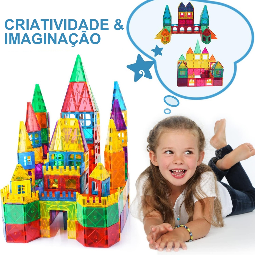 Produto Certificado pelo INMETRO para garantir a segurança que os pequenos merecem. Monte diferentes formas e crie os objetos com os acessórios que acompanham o kit. Esse conjunto de blocos de brinquedos com ímãs transparentes abrange muitas formas, pode ser combinado em muitos padrões e desenvolve a imaginação, a criatividade, as habilidades motoras, as habilidades sociais e a mente das crianças. Alta transparência: Diferentes cores aleatórias de blocos magnéticos com alta transparência. A luz atravessa os blocos e projeta uma linda sombra colorida no chão. Os blocos magnéticos são perfeitos para uso em família, no jardim de infância, em creches, na pré-escola, em escolas de ensino fundamental etc. Presentes perfeitos para brinquedos de aprendizado: Os brinquedos de peças magnéticas são um presente de aniversário perfeito, presente de Natal ou qualquer outra ocasião para meninos e meninas com mais de 3 anos de idade. As crianças vão se divertir com essas peças magnéticas de construção 3D sozinhas ou com seus colegas. Deixe que os blocos magnéticos tragam alegria e diversão para seus filhos e que eles explorem a beleza dos blocos magnéticos.