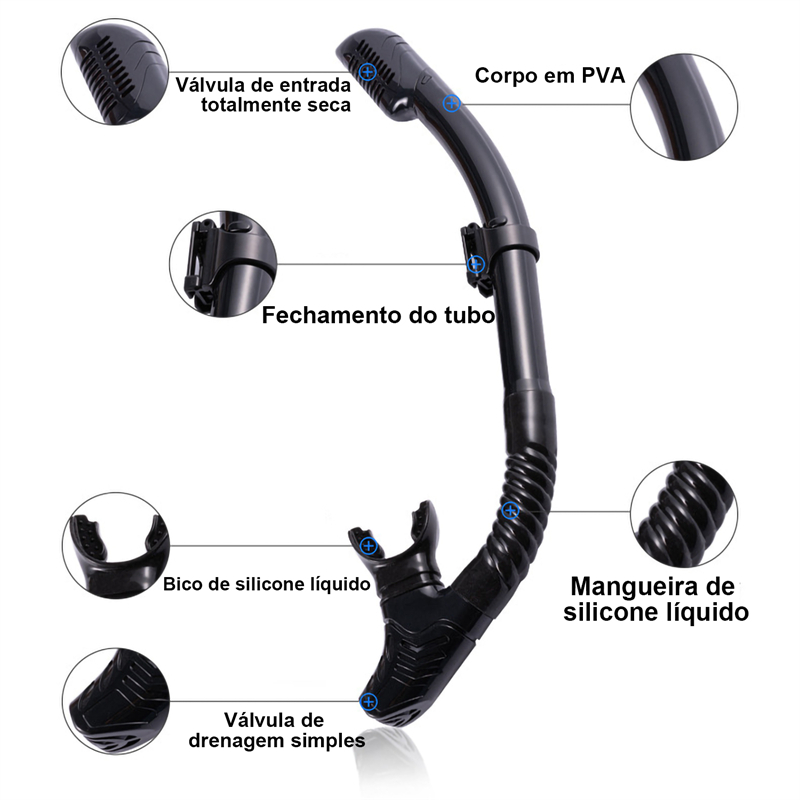 Especificações: ● Máscara Máscara de cabeça: silicone líquido de grau alimentício Lente: vidro temperado ● Tubo de ventilação Cavidade oral e mangueira: silicone líquido de grau alimentício Material da tubulação: PVC Design de moldura grande :O grande design da moldura da máscara fornece um campo de visão mais amplo, tornando mais fácil ver debaixo d'água e apreciar a paisagem. Espelho de rosto de silicone :O espelho facial de silicone permite uma respiração fácil durante o mergulho, garantindo que você não tome água ou se sinta desconfortável enquanto está debaixo d'água. Filme antiembaçante: A máscara de mergulho está equipada com um filme antiembaçante, que pode prevenir eficazmente o embaçamento e permitir que você veja o mundo subaquático com mais clareza. Características: Lente de vidro temperado, visão subaquática clara. Saia de silicone confortável e seção da ponte do nariz para ajuste à prova de vazamento. Faixa de cabeça ajustável firmemente presa à cabeça. Quadro de policarbonato, durável e durável. Bocal de silicone não tóxico importado é confortável. Um topo seco impede que a água mergulhe na água. Fivela de liberação rápida ajustável. Nota: 1. Rasgue a película plástica protetora da lente antes de usá-la. 2. Para colar o revestimento antiembaçante, pode haver alguns arranhões na película plástica protetora, o que não afetará o funcionamento da lente. 3. A lente tem um revestimento óptico que reflete o brilho azul sob a luz do sol, o que faz com que a lente pareça ligeiramente TINTADA. 4. NÃO limpe vigorosamente a parte interna da lente, pois isso arranhará o revestimento óptico. 5.Atenção!!! Os óculos de proteção não são recomendados para uso em águas profundas. Recomendado para uso em profundidades subaquáticas de até 5 m, proibido abaixo de 10 m.
