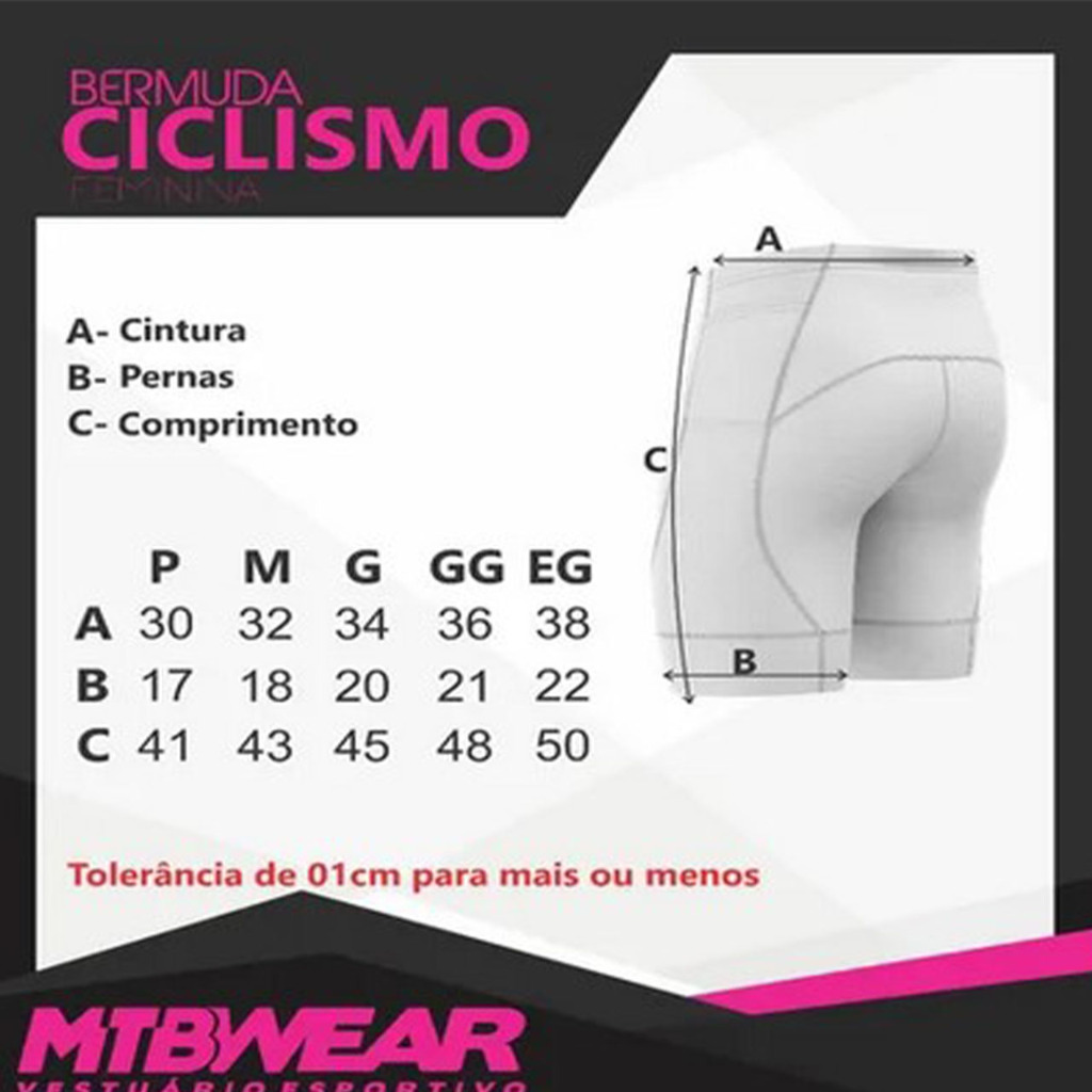 BRETELLE Ciclismo CARACTERÍSTICAS TÉCNICAS Conteúdo: Um Bretelle • Bermuda confeccionada em lycra • Forro em Gel interno MTB, com tratamento antimicrobiano. • Possui recortes anatômicos que proporcionam maior conforto. • Costuras reforçadas FORRO: O Forro mtb (densidades D80 forro nacional) possui resistência ao impacto e permite mais horas de pedalada sem perda de conforto. É confeccionado com multifilamentos, com tecido inteligente que proporciona conforto térmico e impede a proliferação de fungos e bactérias Obs: Podendo forro ir com forro importadoD60,que tem a mesma qualidade do d80 nacional Bermuda com recorte anatômico que garante conforto e flexibilidade. Confeccionada em Lycra, mantém o músculo aquecido e a temperatura do corpo estável. Tecido com tratamento antimicrobiano com que evita a proliferação das bactérias que produzem odor. --- PRODUTOS À PRONTA ENTREGA, COM NOTA FISCAL E GARANTIA --- Sobre nossa empresa: A MTB Wear presta serviços à ciclistas de todo o Brasil há mais de 15 anos, e sempre preza pela amizade entre cliente e vendedor! Não fazemos vendas, fazemos amigos de pedal! Tenha a certeza de estar comprando de quem pedala com paixão, assim como você! Seja muito bem vindo à família MTBWEAR, agradecemos sua visita e volte sempre! --------------------------------------------------------------------------------------------------------------- Ficou mais alguma dúvida? Faça uma pergunta que respondemos em apenas alguns minutos! ---------------------------------------------------------------------------------------------------------------