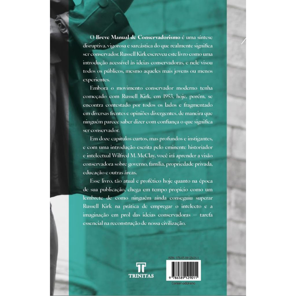 O Breve Manual de Conservadorismo é uma síntese disruptiva, vigorosa e sarcástica do que realmente significa ser conservador. Russell Kirk escreveu este livro como uma introdução acessível às ideias conservadoras, e nele visou todos os públicos, mesmo aqueles mais jovens ou menos experientes.Embora o movimento conservador moderno tenha começado com Russell Kirk, em 1953, hoje, porém, se encontra contestado por todos os lados e fragmentado em diversas frentes e opiniões divergentes, de maneira que ninguém parece saber dizer com confiança o que significa ser conservador.Em doze capítulos curtos, mas profundos e instigantes, e com uma introdução escrita pelo eminente historiador e intelectual Wilfred M. McClay, você irá aprender a visão conservadora sobre governo, família, propriedade privada, educação e outras áreas.Esse livro, tão atual e profético hoje quanto na época de sua publicação, chega em tempo propício como um lembrete de como ninguém ainda conseguiu superar Russell Kirk na prática de empregar o intelecto e a imaginação em prol das ideias conservadoras — tarefa essencial na reconstrução de nossa civilização.