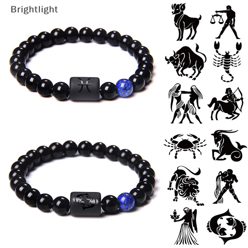 [brightlight.br] 12 Constellation Zodiac Signs Bracelet with Black Onyx Beads for Couples [BR]