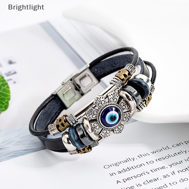 [Brightlight] Pulseiras Turcas Lucky Eye Pulseira Punk De Couro Multicamadas Feita À Mão [BR]