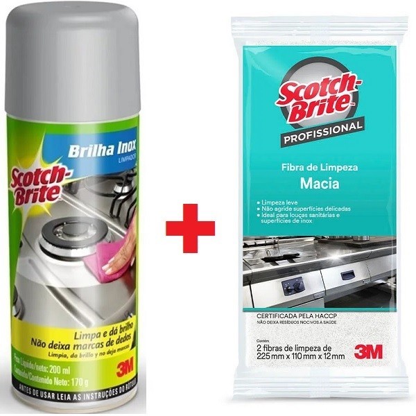 Brilha INOX Removedor Limpador + SCOTH Brite Fibra Macia 3M