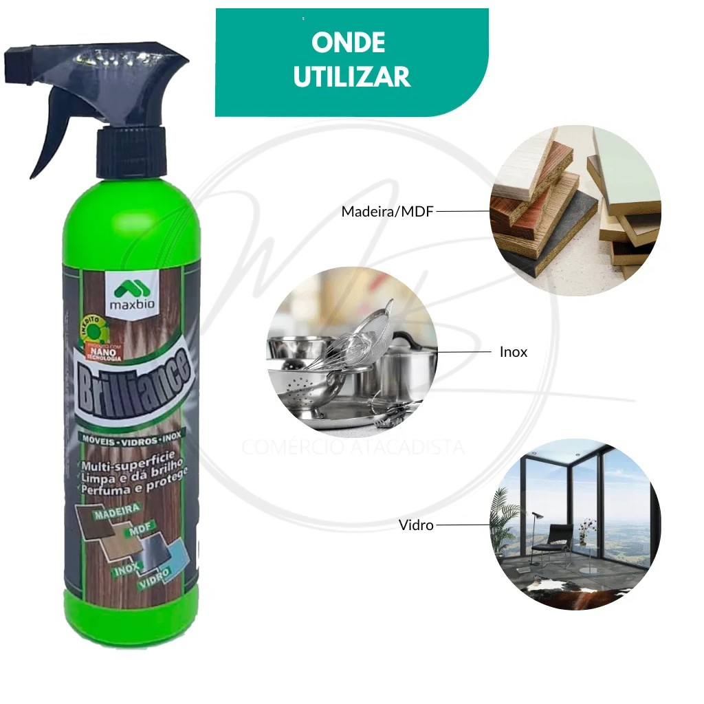 Contém: 01 - Brilliance limpador de uso geral 500ML Maxbio O Brilliance é o Multi-Superfície Superconcentrado da Maxbio que Limpa, dá Brilho, Perfuma e Protege. Assim como os outros produtos da linha Maxbio o Brilliance foi desenvolvido para atender vários tipos de superfície que sejam próprias para LIMPEZA A SECO PROPICIANDO UMA PELÍCULA DE PROTEÇÃO! ELE É IDEAL PARA SER APLICADO EM VIDROS, ESPELHOS, VIDRAÇAS, MÓVEIS, BANCADAS, MDF, ARMÁRIOS, AÇO INOX, LATÃO E SUPERFÍCIES BRILHANTES EM GERAL. DÚVIDAS FREQUENTES 1. O produto é novo? Sim, o produto anunciado é novo. 2. O produto está disponível em estoque? Sim, disponível para envio imediato após a liberação de sua compra. 3. O produto acompanha nota fiscal? Sim. Trabalhamos somente com produtos originais de fábrica. Verifique sempre os seus dados cadastrais antes de efetuar a compra. ***As imagens poderão ter alteração de cor nos produtos, devido a diferença de cores entre monitores, telas de celulares e luzes ambientes na hora da foto.
