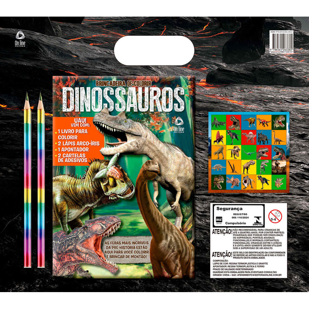 -Olá, pequenos exploradores! Estão prontos para uma super aventura com "Dinossauros Brincadeira de Colorir"? Neste kit, vocês vão encontrar páginas cheias de dinossauros legais esperando por cores brilhantes! Com 2 lápis de cor arco-íris, um apontador e não se esqueçam da cartela de adesivos super divertidos para enfeitar suas artes! Vamos colorir e explorar o mundo dos dinossauros!