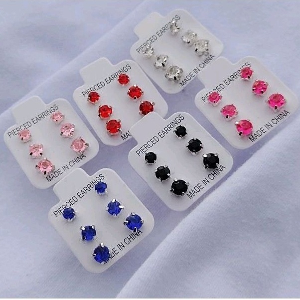 Brinco 3 Pares METAL Ponto de Luz 1 2 3 Furo Strass Cartela Trio Colorido Preto Azul Vermelho Rosa Pink Cristal