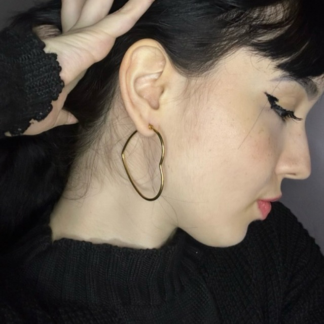 Brinco argola coração grande dourada aço inoxidável cirurgico