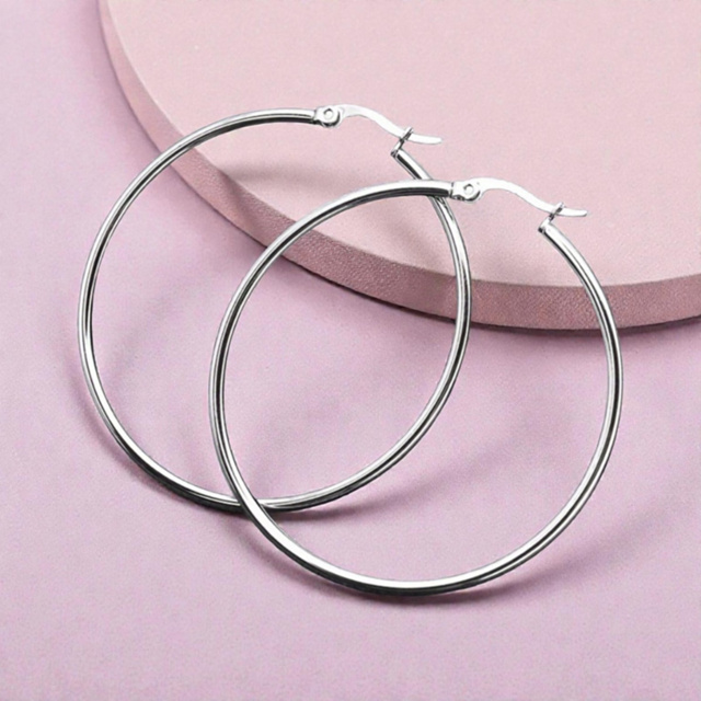 Brinco Argola de Aço Inoxidável 316L Tamanho Médio e Grande Prata Antialérgico Feminino