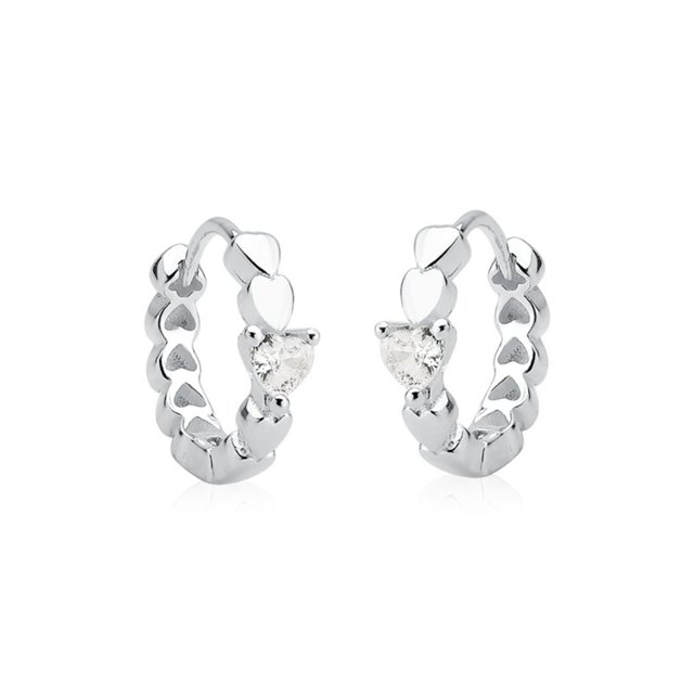 Brinco Argola de Prata 925 Click com Corações e Zircônia