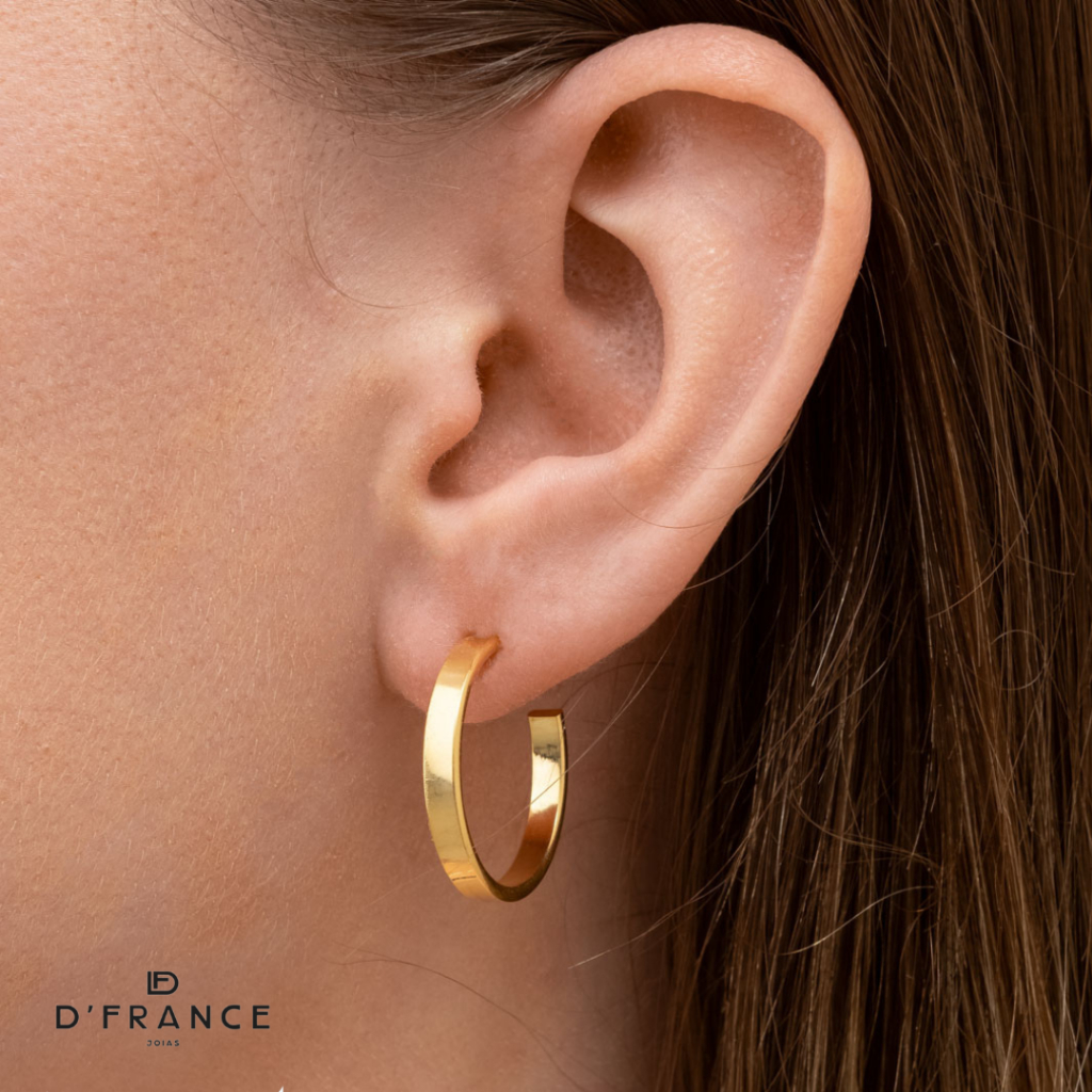 Brinco Argola Grande Lisa Fio Quadrado Banhado a Ouro 18K - D'France Semijóias
