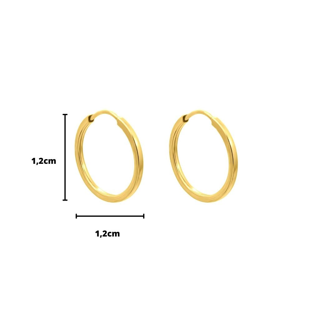 Brinco Argola Ouro 18k Maciço Redondo Unisex Segundo Furo 12mm