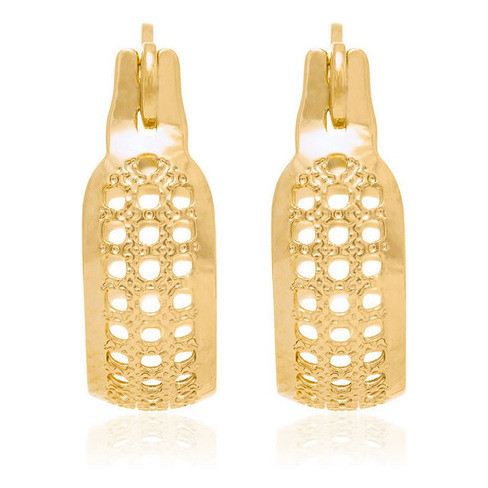 DESCRIÇÃO DO PRODUTO - BRINCO ARGOLA TRABALHADA COM PEQUENOS QUADRADOS VAZADOS, MED 1,4 CM