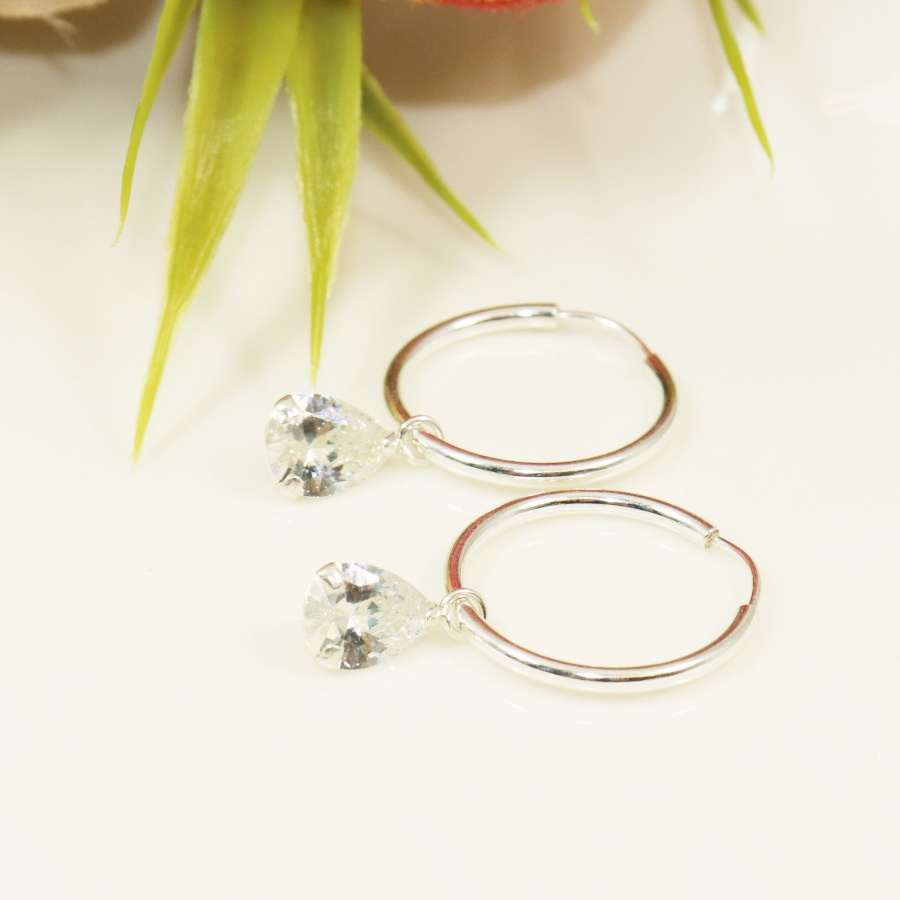 Brinco Argola Ponto Luz Gota Prata Legitima 925