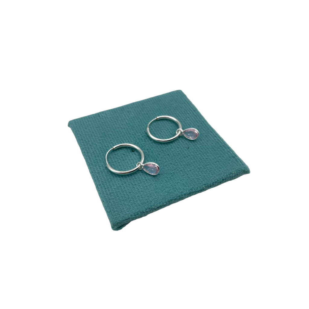 Brinco Argola Prata 925 Com Pingente Gota Ponto de Luz Diversas Cores