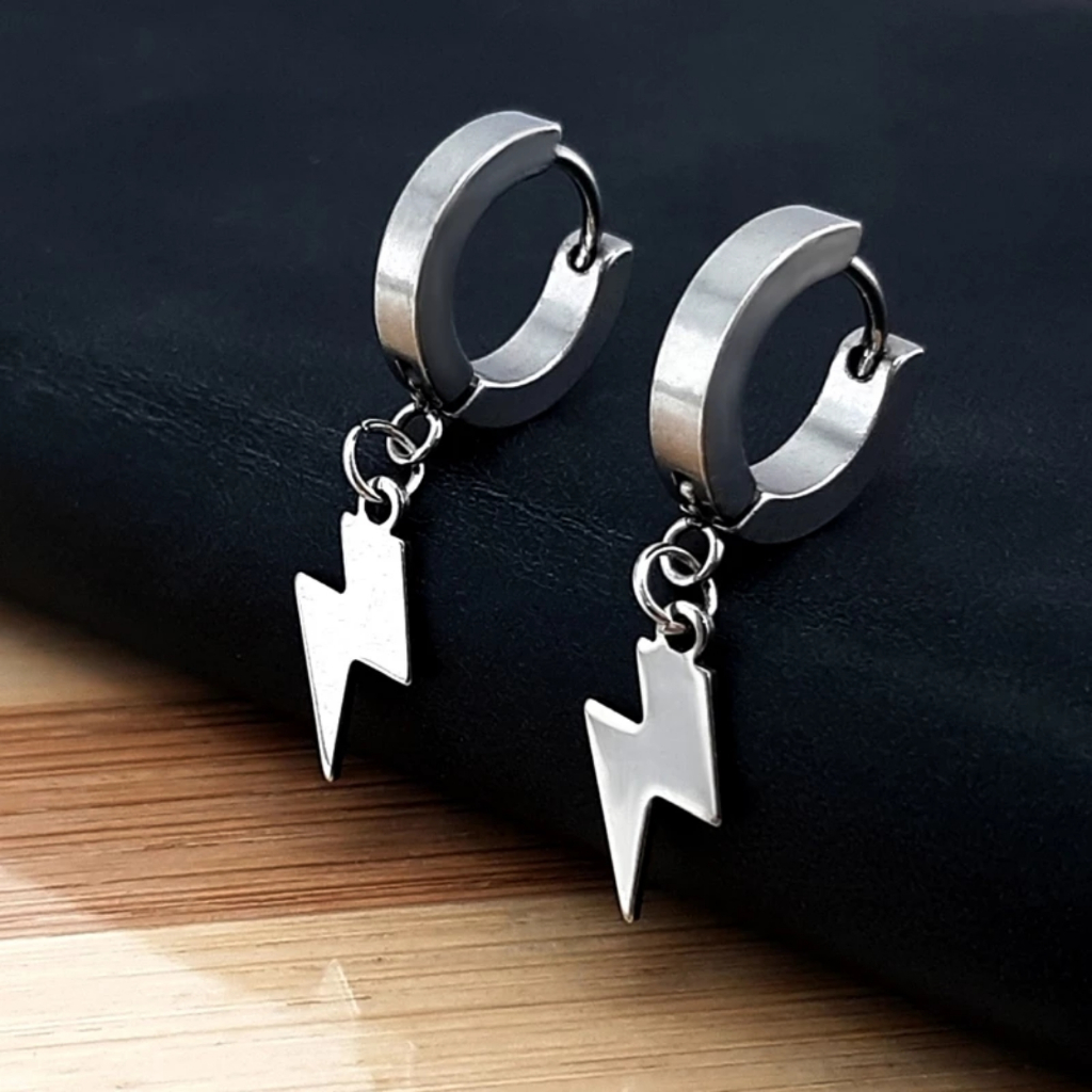Brinco Argola Raio Cruz Masculino e Feminino Aço Cirúrgico Não fica Preto