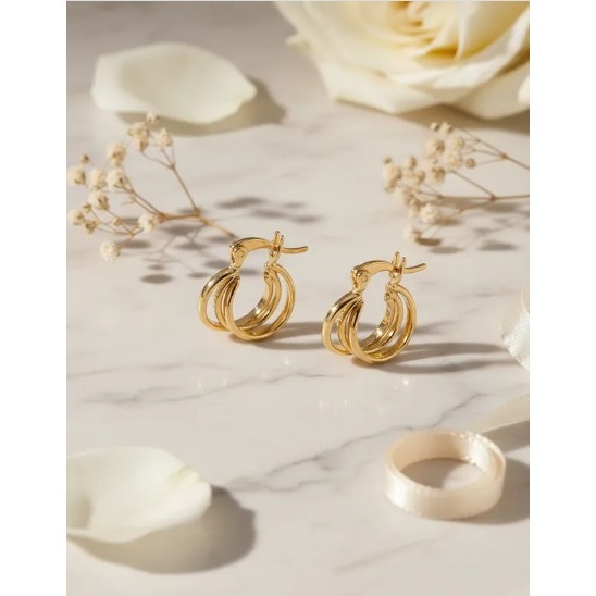 Brinco Argola Tripla Vazada Rommanel Folheado A Ouro Cor Dourado 523646