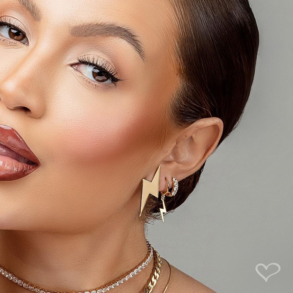 Material: Metal. Banho: Ouro 18k. Tamanho: 0,8 mm (diâmetro) Tamanho do pingente: 1,5cm. Fecho: Articulado. Peso: 0,001 g. Apresentamos o encantador Brinco Mini Raio, um modelo de argolinha articulada com um adorável pingente de mini raio em metal, todo banhado a ouro 18k. Este acessório é a definição de simplicidade e modernidade combinadas, tornando-o perfeito para usar sozinho e também ótimo para compor um visual com outros brincos maiores. Deixe sua imaginação fluir e mantenha-se sempre deslumbrante. Não perca a chance de adquirir o seu! Observações - Garantia de 3 meses quanto ao banho - É uma peça hipoalergênica, pois não contém níquel em sua composição - Dica da Piuka: Para fazer a limpeza dos seus acessórios, use nossa flanela mágica, ela ajudará a manter suas peças sempre brilhantes.