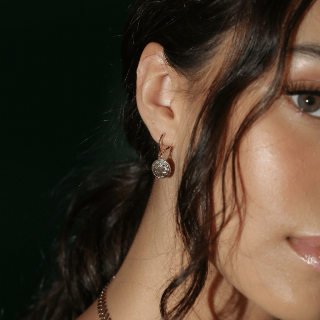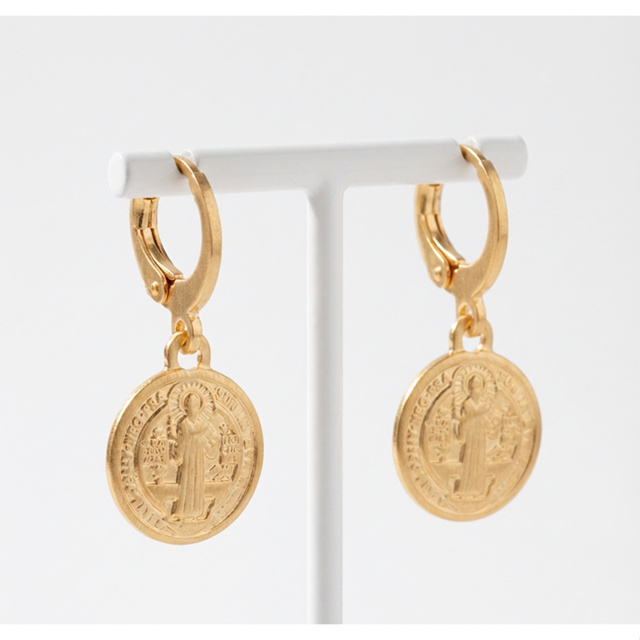 Brinco Banhado a Ouro 24K com Medalha Religiosa de São Bento 2 Anos de Garantia