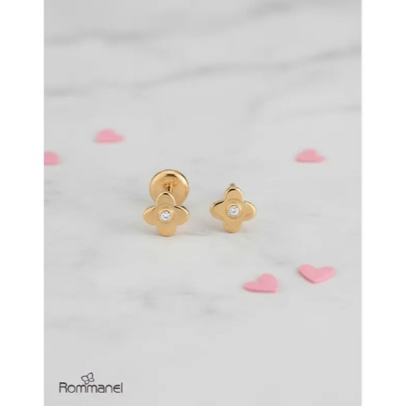 Brinco Bebê Rommanel - Borboleta Antialérgico Folheado a Ouro e pedrinha de zircônia 526395
