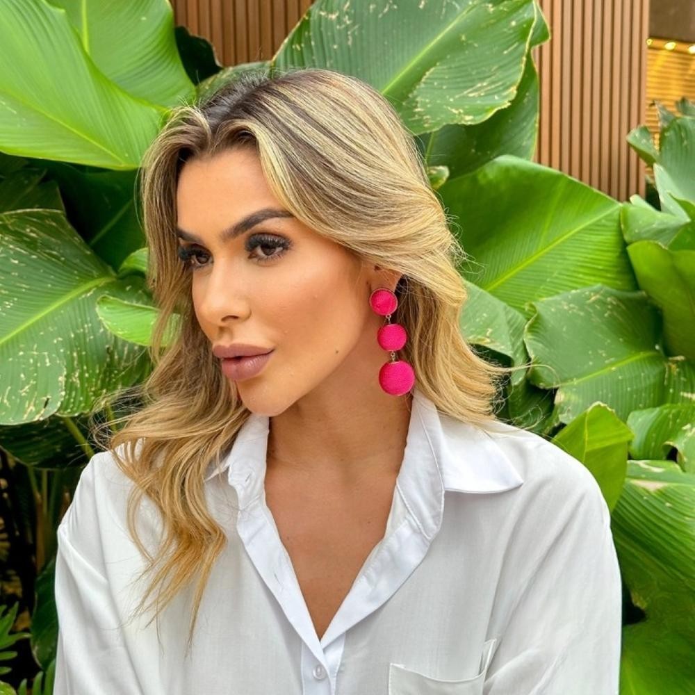 Material: Metal e fio acetinado. Pino: Aço cirúrgico. Tamanho do brinco: 8,5 cm. Tamanho da 1º esfera: 2,5 cm. Tamanho da 2º esfera: 2,0 cm. Tamanho da semi esfera: 2,0 cm. Peso: 0,030 g. O brinco Maria Emília, é composto por três bolas de diferentes tamanhos, cobertas por um fio acetinado na cor pink, com metal dourado. Um brinco super sofisticado, moderno, fica perfeito para ser usado com um look, mais básico, com cores neutras, dando aquele ar alegre ao seu visual. Aqui na Piuka você encontra uma infinidade brincos para alegar ainda mais a sua vida, e deixar o seu look perfeito. Garanta logo o seu! Observações Observação: Este brinco é um acessório feito artesanalmente, podendo conter algumas variações em relação a foto. -Garantia 3 meses para defeito de fabricação. - Dica da Piuka: Para fazer a limpeza dos seus acessórios, use nossa flanela mágica, ela ajudará a manter suas peças sempre brilhantes.