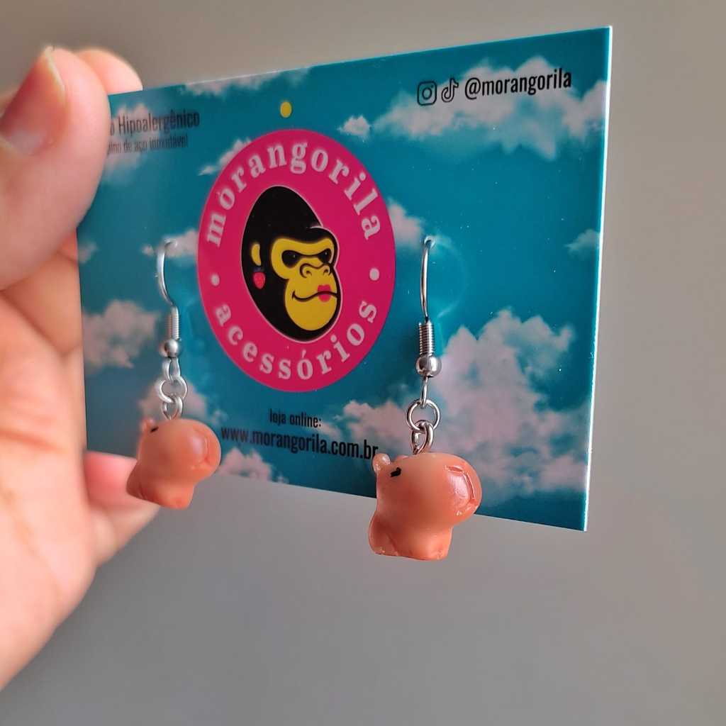 Brinco capivarinha de resina hipoalergênico/antialérgico (anzol de aço inoxidável), possui 3,5cm de comprimento contando com o anzol