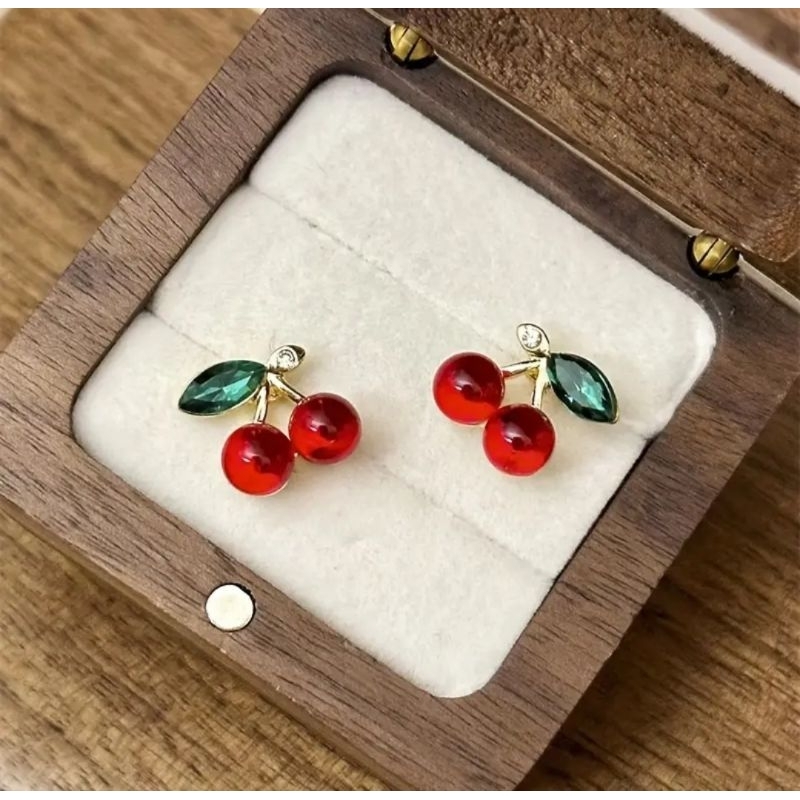 Brinco Cereja Vermelho Delicado Modelo Cerejinha com Strass