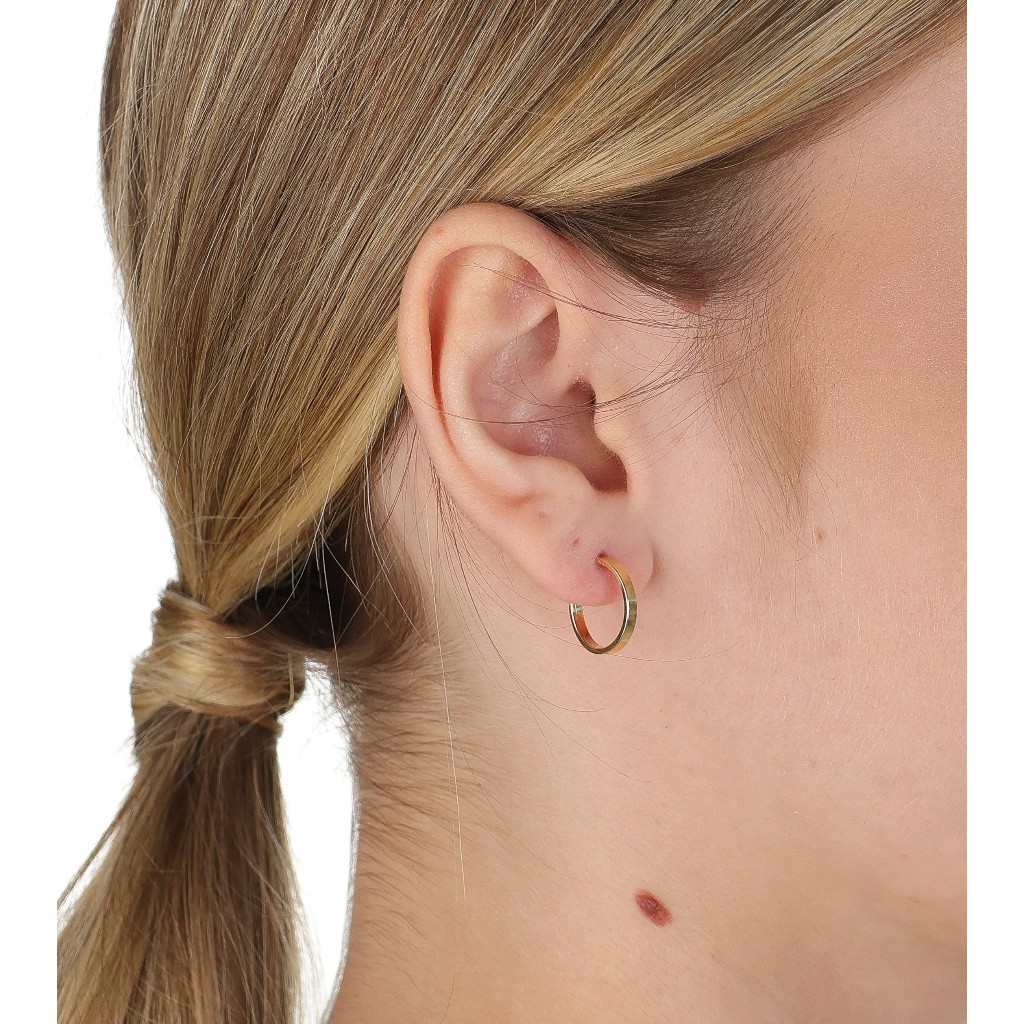 Brinco Chato Argola 14 Mm Em Ouro 18k 750