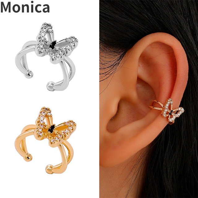 Brinco Clipe De Osso De Orelha Formato De Borboleta Com Zircônia