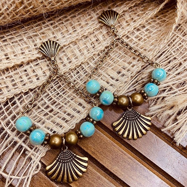 Especificações: Estrutura: Brinco com acabamento em bolas de acrílico e corrente. Modelo: Concha. Contém: 1 par de brincos. Acabamento: Bijuteria. Coleção: Brincos. Material: Brincos feitos com corrente cadeado em alumínio, bolas de acrílico e ABS. Fecho: Pino com tarraxa. Tamanho: Grande - 9,0 cm de comprimento x 5,5 cm de largura. Peso: 20,0 g o par - Peso leve. Peça delicada - não molhar. Cuidados: Essa peça não deve entrar em contato com líquidos e produtos químicos como cremes, perfumes, sabonetes, entre outros. Guarde em local seco e sem atrito com outros materiais.