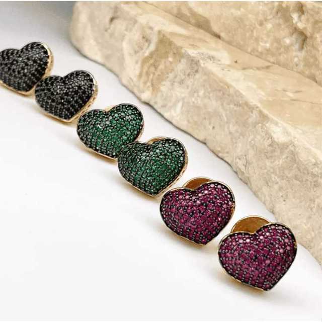 Brinco Coração Cravejado com Zircônias Luxo Estilo Elegância Moda Feminina Presente Mulher