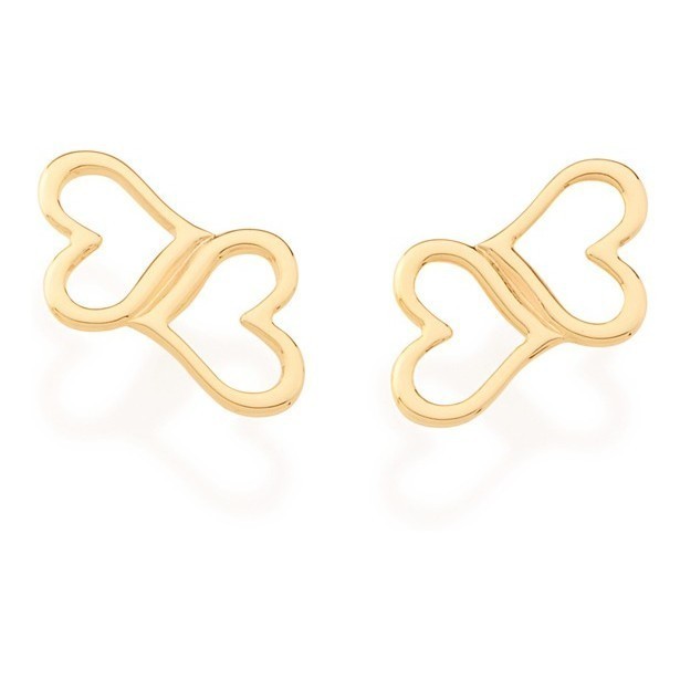 DESCRIÇÃO DO PRODUTO - BRINCO FORMADO POR "CORAÇÕES" INTERCALADOS VAZADOS. MED. 1,00CM SkuCompleto 5255350000
