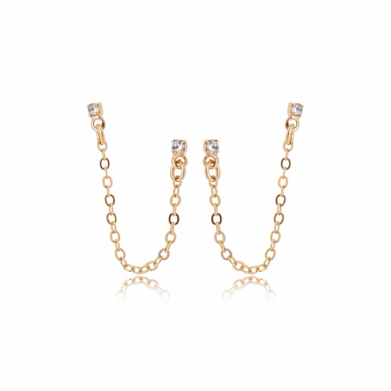 Brinco Corrente Com 2 Pontos de Luz Para Segundo Furo Ouro 18k Ou Prata 925