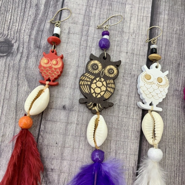Brinco Corujinha com Penas Brinco Hippie BOHO Artesanato Solitário 1Unidade