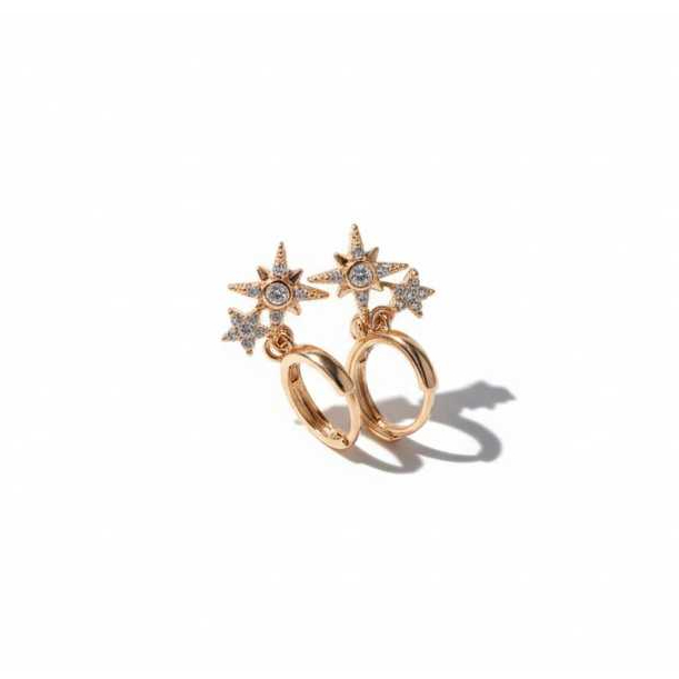 Brinco De Argola Com Estrela Zircônia Banhado Ouro 18K Dourado Estilo Moderno Elegante