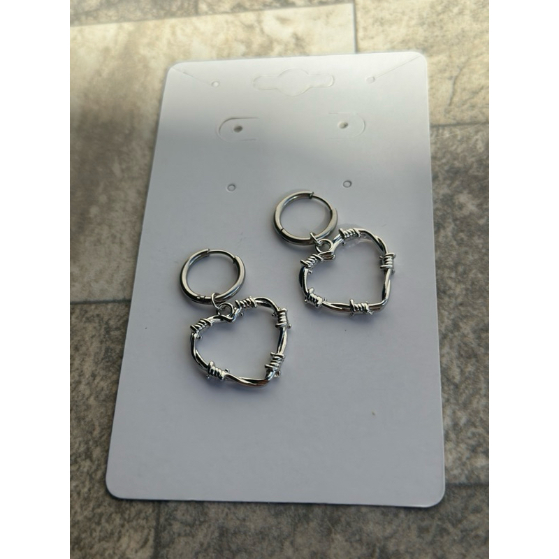 Brinco de Argola Coraçao Arame Farpado - Argola em Aço inoxidavel com pingente de coração em ferro