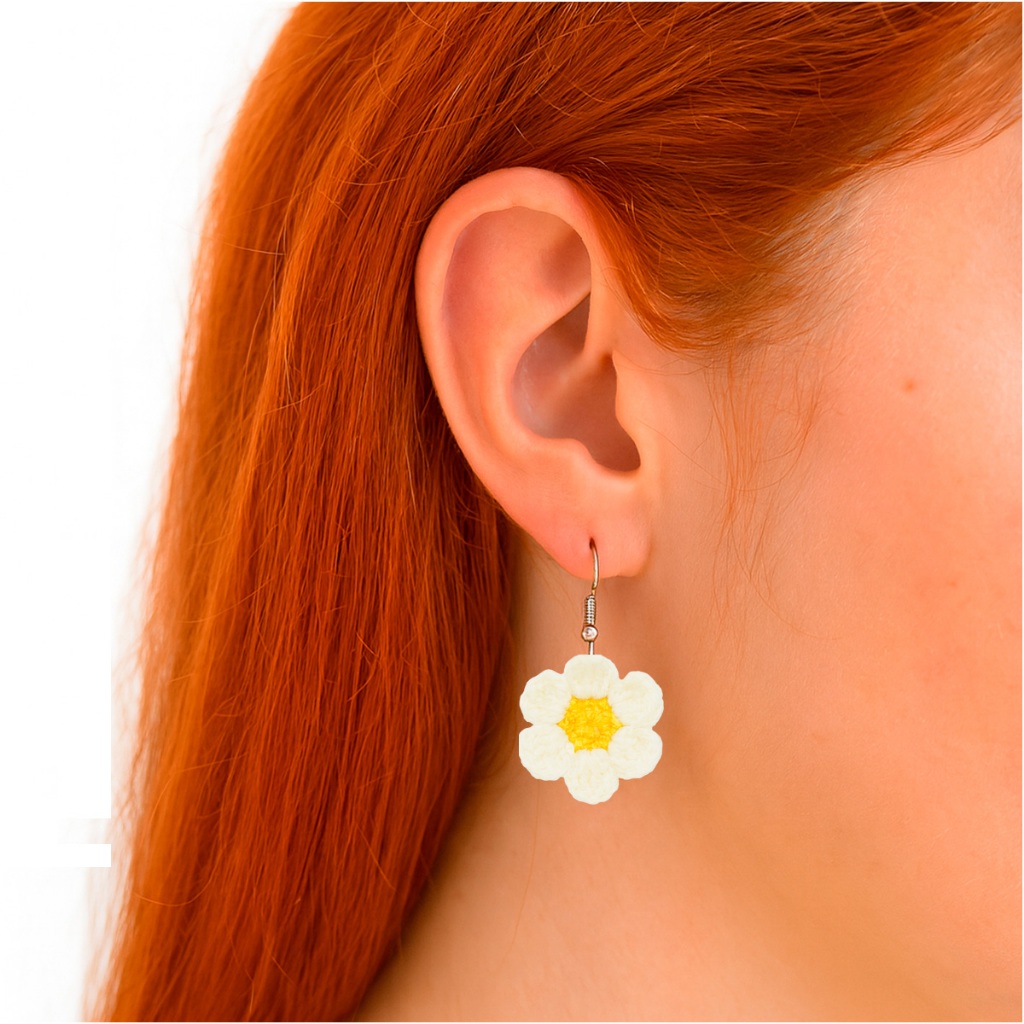 Brinco De Flor Margarida Aesthetic Crochê Delicado Hippie