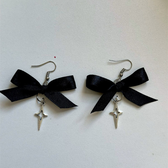 Brinco de Laço de cetim preto com Cristal - Par de Brincos de Laço de Cetim com pingente de estrela