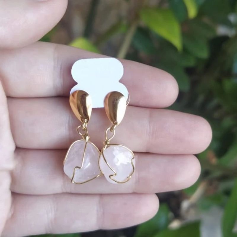 Brinco de Pedra natural encestado folheado a Ouro