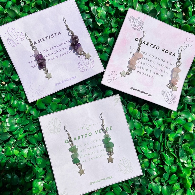 | Brinco de Pedra Natural Quartzo Verde / Ametista / Quartzo Rosa com... este produto | R$ 18,99 | 24% | 5.0/5 | 14 |