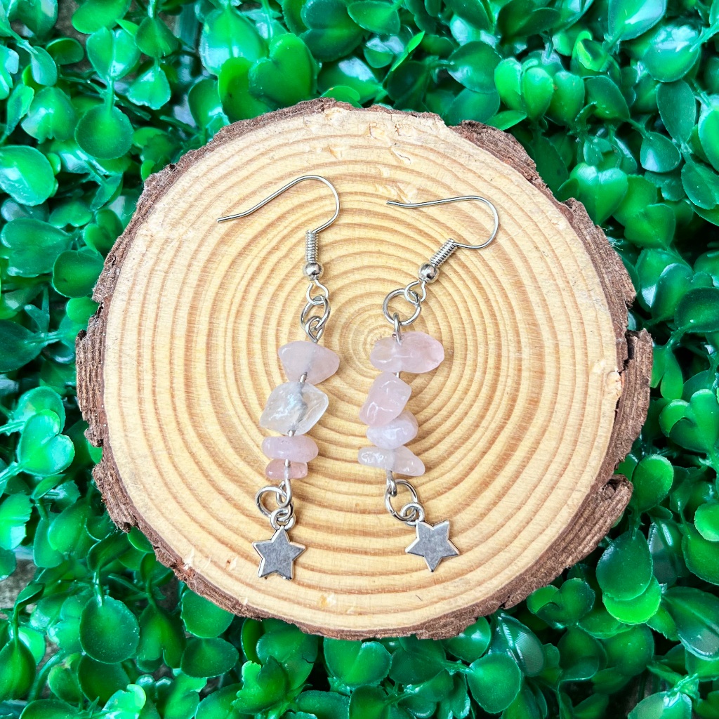 Brinco de Pedra Natural Quartzo Verde / Ametista / Quartzo Rosa com Pingente de Estrela Delicado