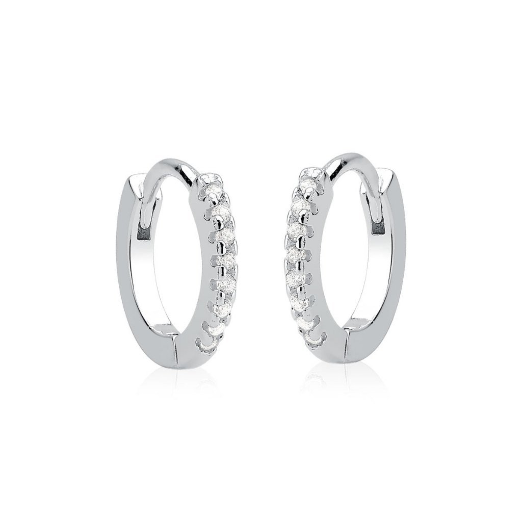 Brinco de Prata 925 Argola Click Cravejada em Diversos Tamanhos | Unissex