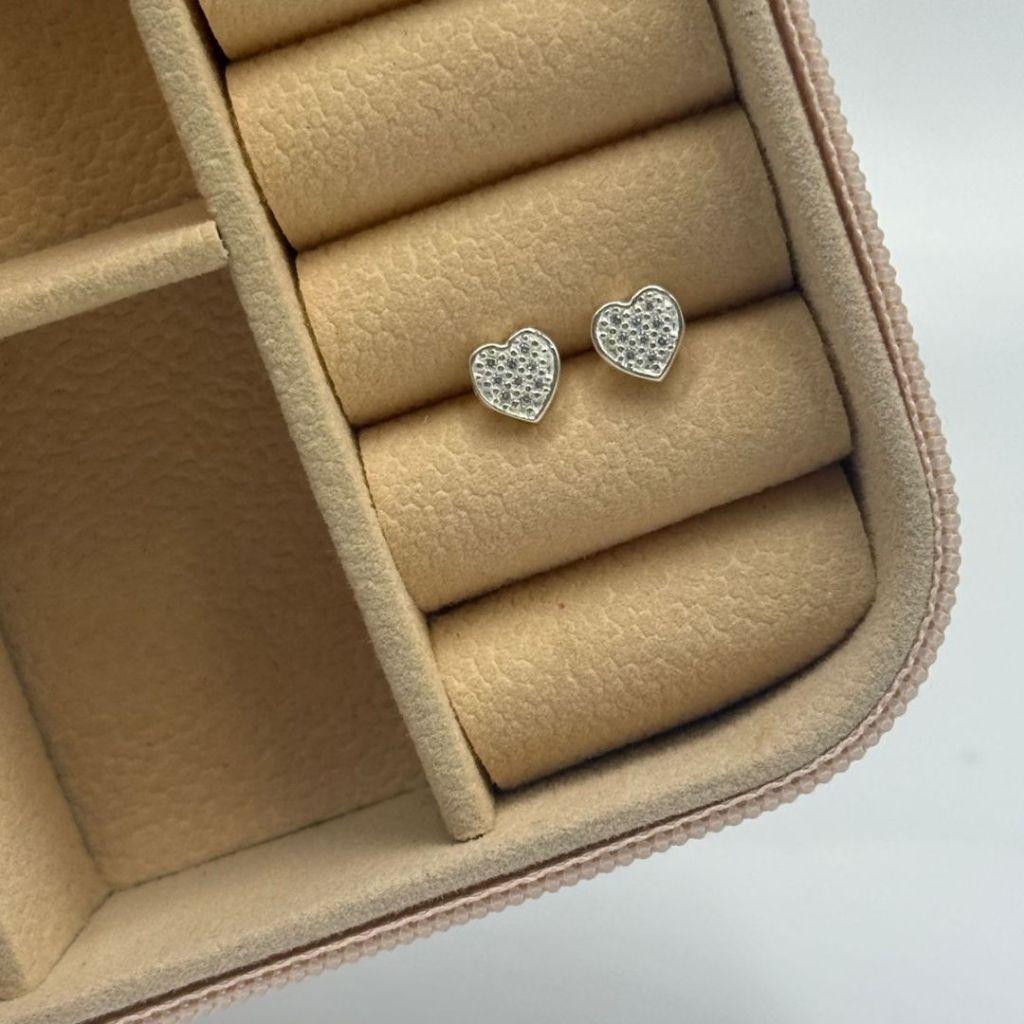 Brinco de Prata 925 Coração Galeria com Zircônias