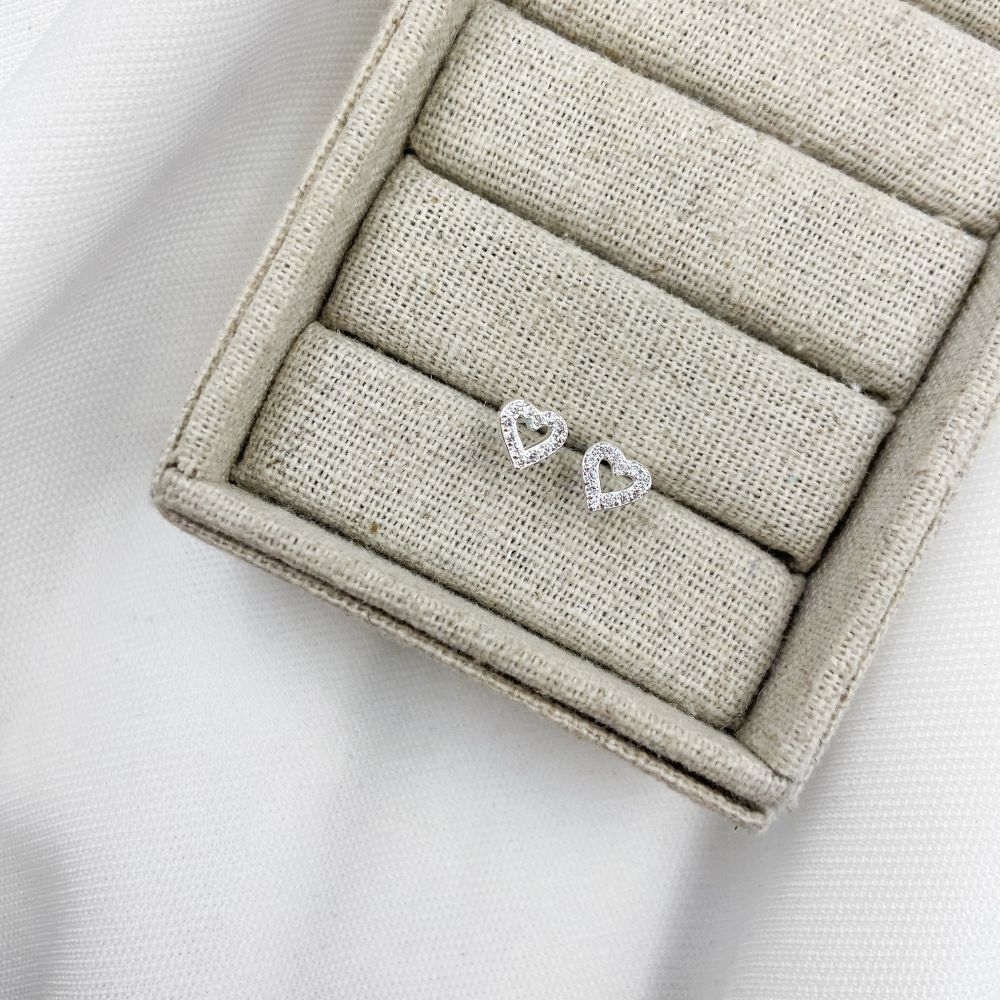 Brinco de Prata 925 Coração Mini Vazado com Zircônia