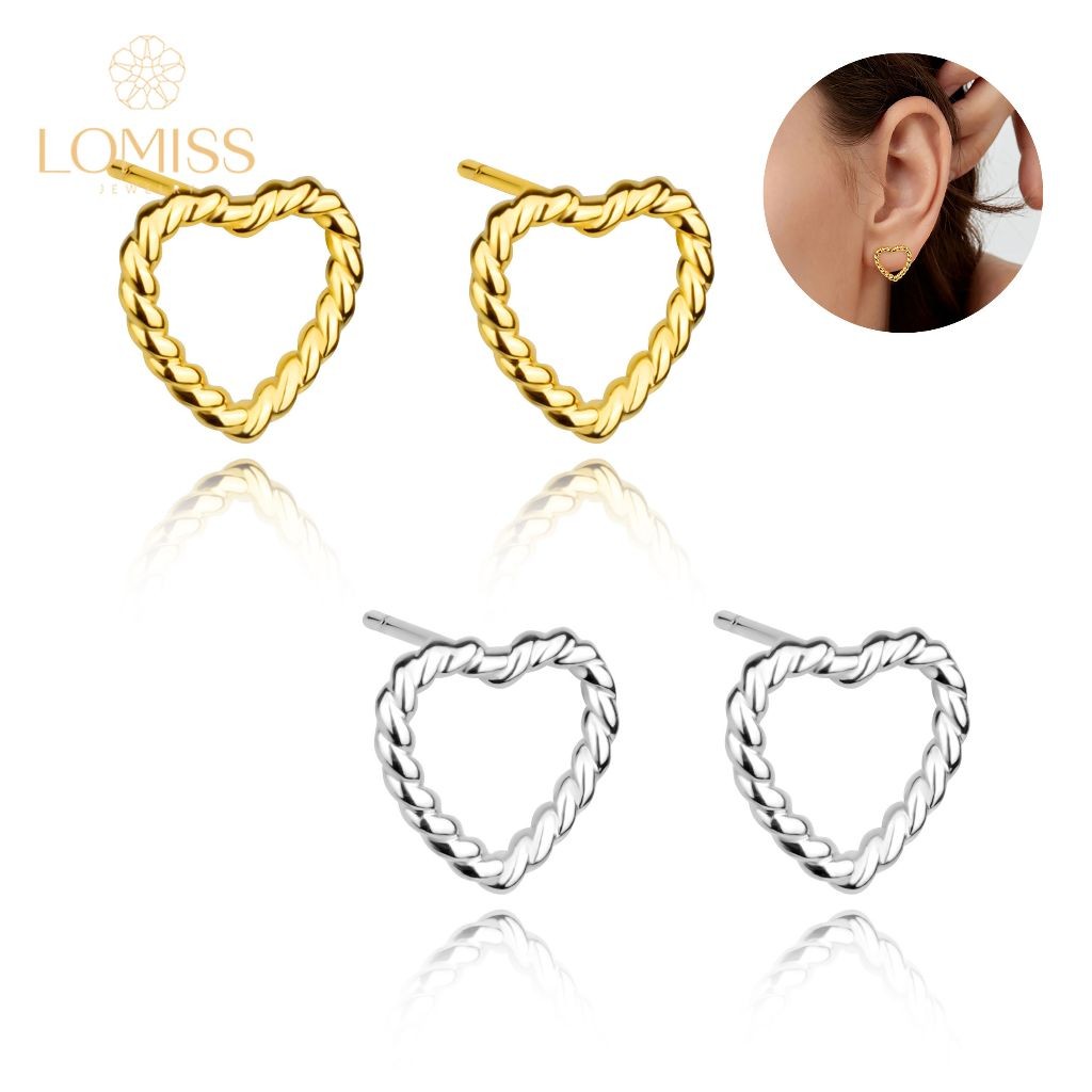 Brinco Delicado Elegante Antialérgico Coreanos Feminino Coração Torcido Folheado Ouro 18k a Platina
