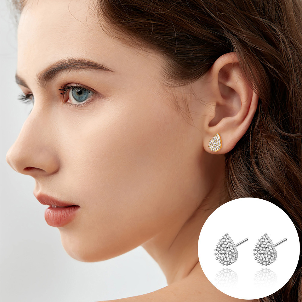 Brinco Delicado Elegante Antialérgico Feminino Folheado Ouro 18k a Platina Gota Zircônia Cravejada