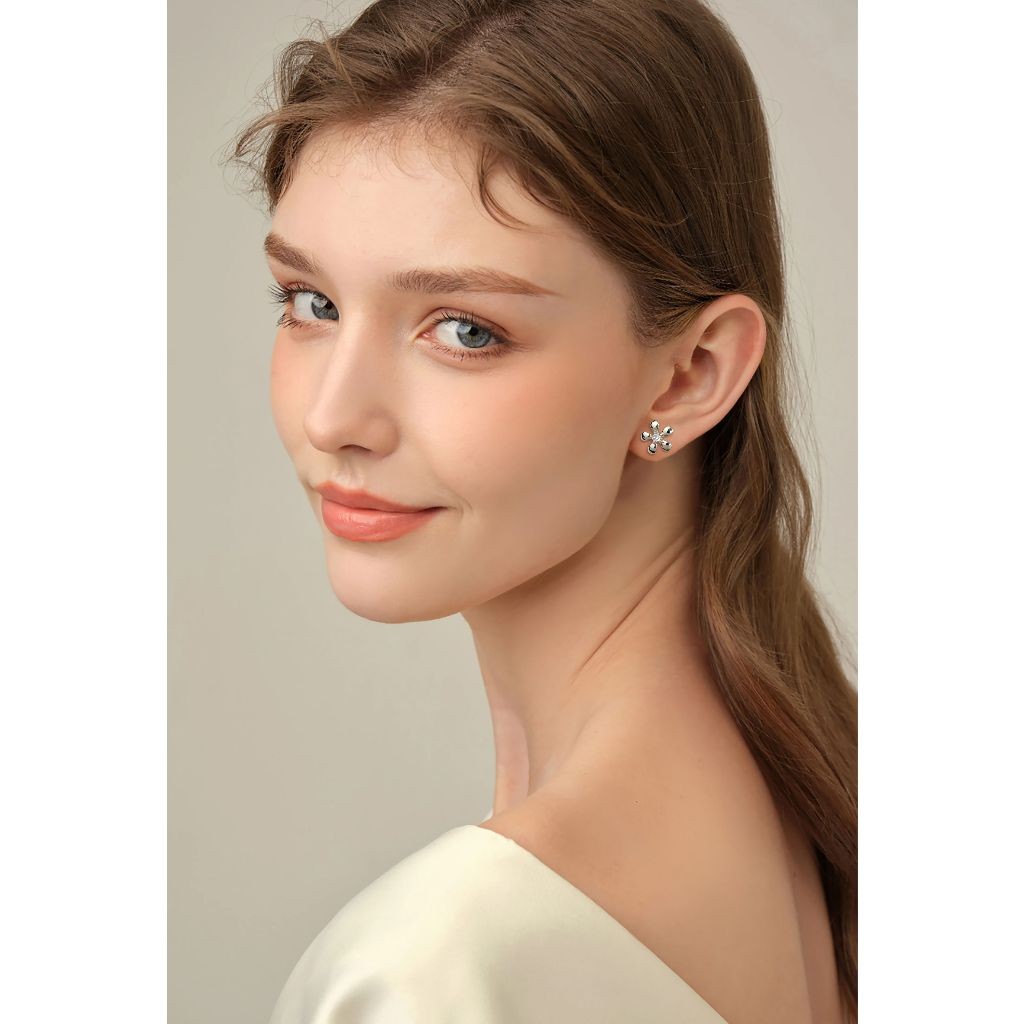 Brinco Delicado Elegante Antialérgico Folheado Ouro 18k a Platina Flor Zircônia Cravejada