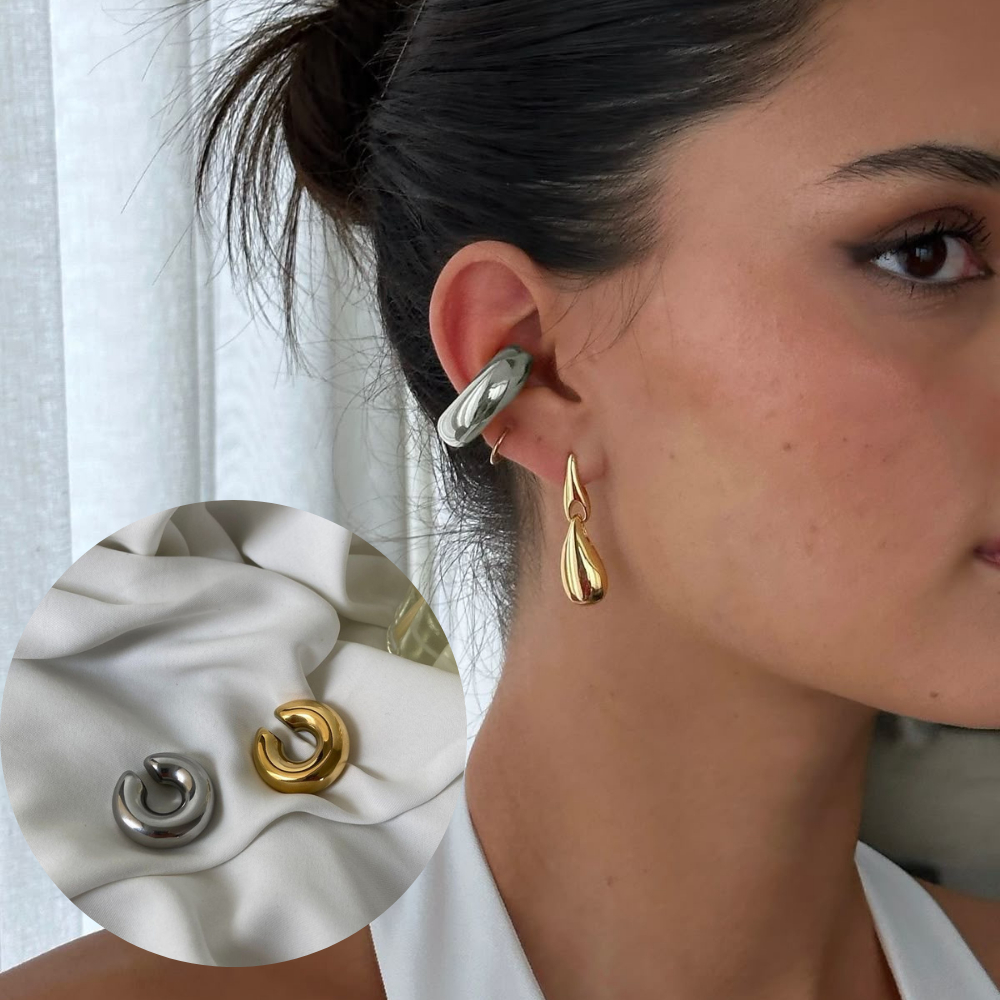 * ATENÇÃO NAS VARIAÇÕES * Para você que deseja uma orelhinha cheia de estilo, o brinco ear cuff, o famosinho piercing fake para cartilagem é ideal. 1 UNIDADE e 2 UNIDADES Modelo Liso Dourado ou Prata Tubo Grosso Levinho e não Machuca Super estiloso Cor Dourado e Prata **ESCOLHA MAIS UNIDADES NAS VARIAÇÕES**