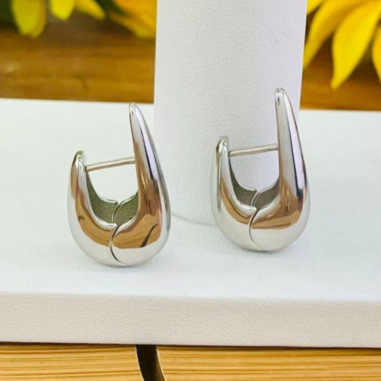 Brinco Em Formato de Gota Alongada Com Acabamento Polido Liso e Fecho Click Ouro e Prata