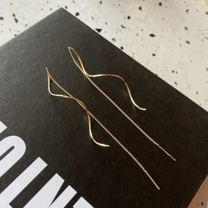 Brinco espiral dourado corrente Banhado A Ouro 18k A prata 925